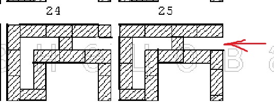 Это изображение канала на просвет (проекция дырки). Обычно тот скошенный уголок заштриховывают черненьким, что намекает на тень, отбрасываемую ребрами кладки предыдущего ряда. |