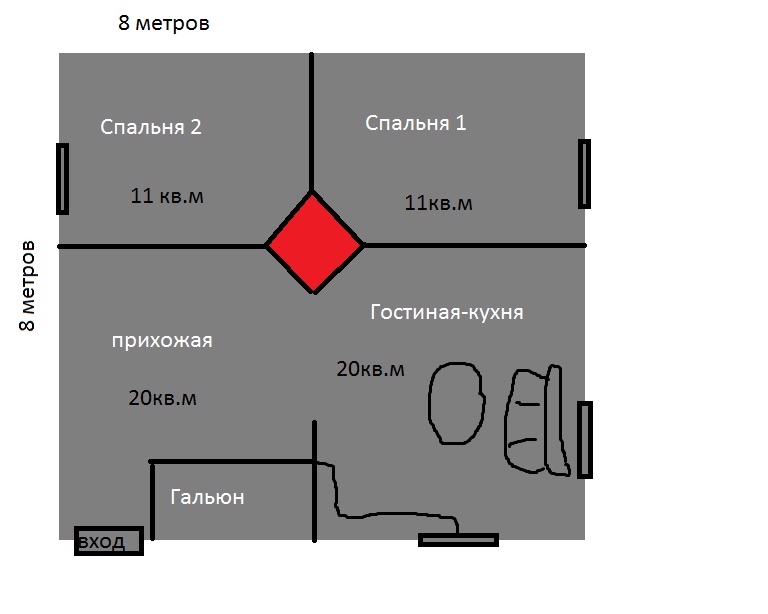 Посоветуйте пожалуйста печь подходящую под такую планировку?