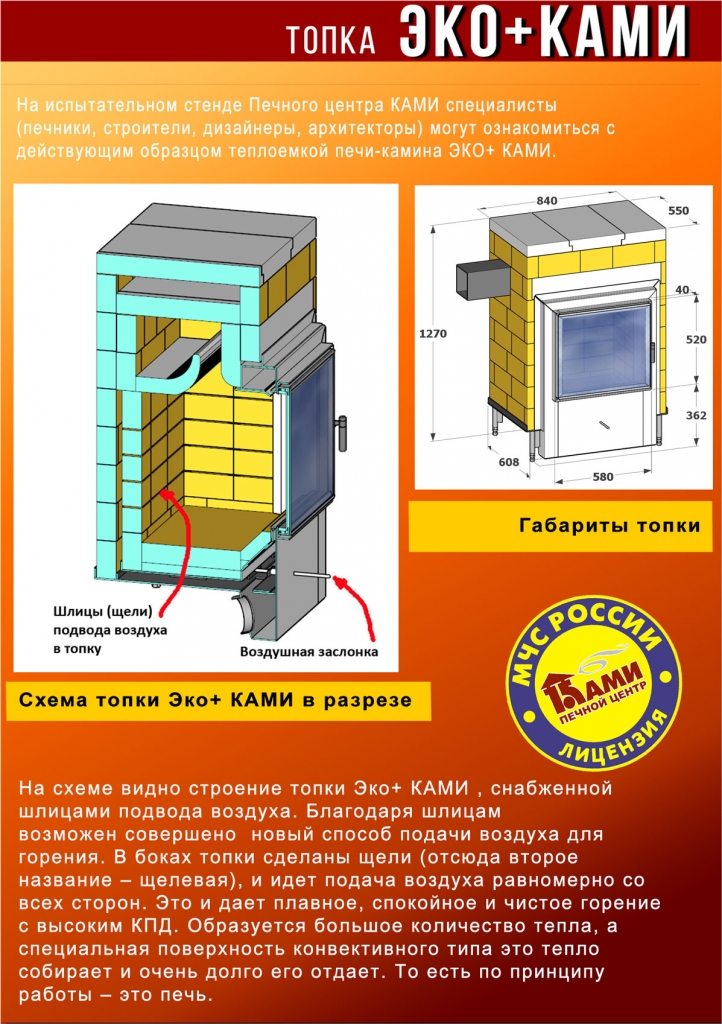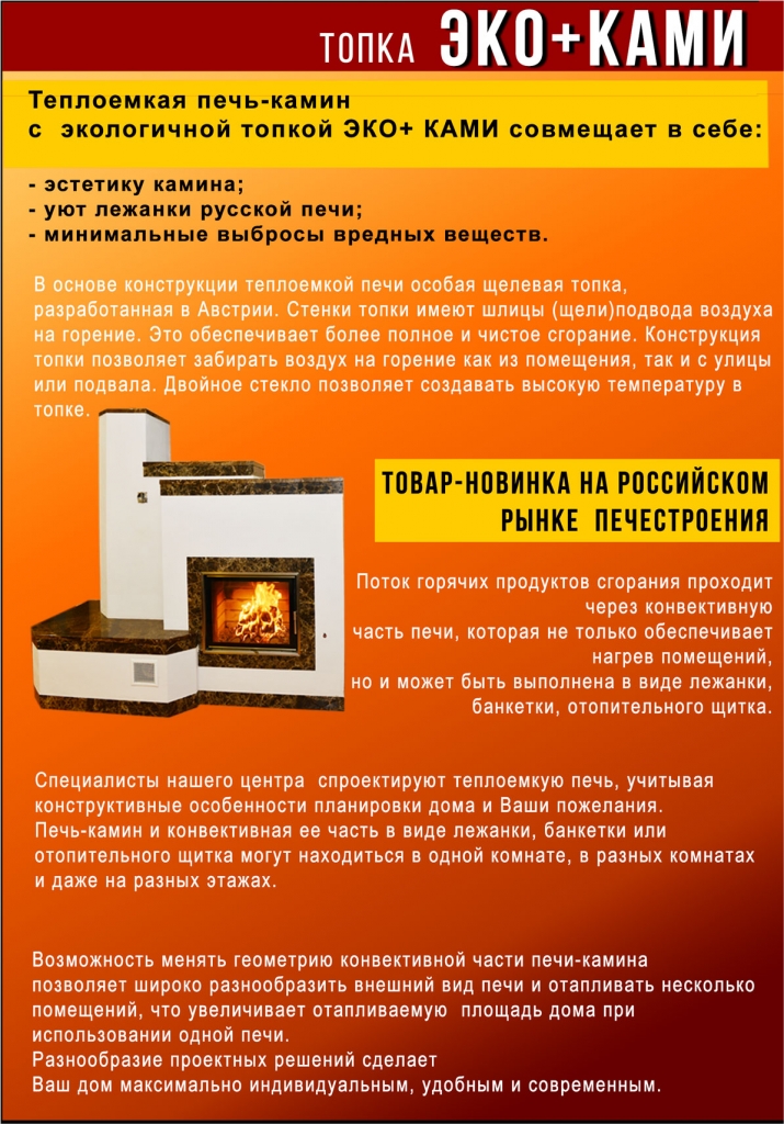Ожидаемым продуктом на рынок стала топка ЭКО+ от ООО КАМИ в сочетание с теплоемким камином закрытого типа.