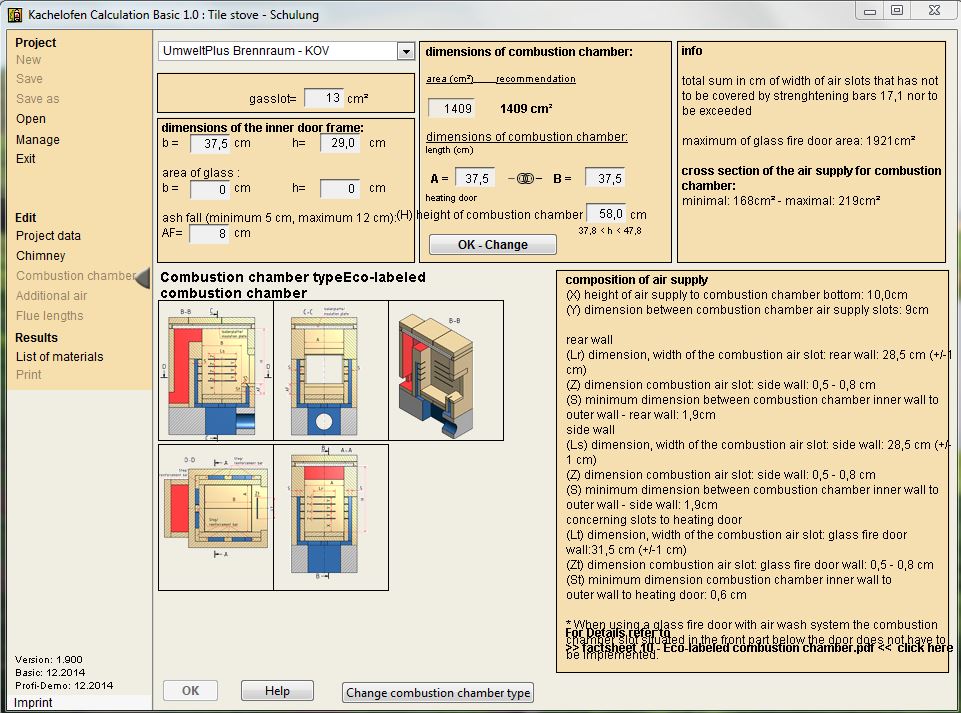 В программу введены данные по расчету печей с топкой ЭКО+ Для Австрии это уже обязательный элемент печи.