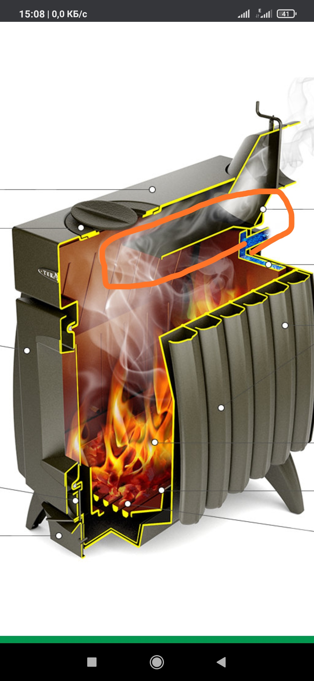 Боюсь, что, мож, стенка прогорела или ещё чего--из-за теплообменных полос ничего не видно, и с фонарём изнутри тоже.