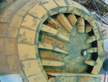 Печь топится с закрытой дверкой. Подача воздуха регулируется поддувалом вне печи и в три точки пода.Купол прогревают до выгорания сажи изнутри -а в это время горячие газы огибают купол снаружи. Для выгорания и разложения сажи нужно 400гр. С такой же температурой газы поступают и на наружную часть внутреннего купола.