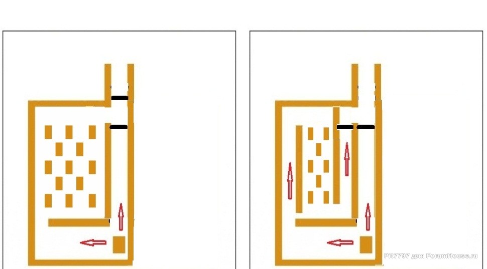 Просто -схемы. В.В. Селиван -начал изучать устройство печей времен царя- так сказать батюшки. В печах с духовкой - ЗЛХ шла через духовку. Поэтому и ставилось 2 задвижки. А каналка без - духовки , была с одной задвижкой. При наличий каналов по 35 см. -должна быть и ЗЛХ. Тоже схема.
