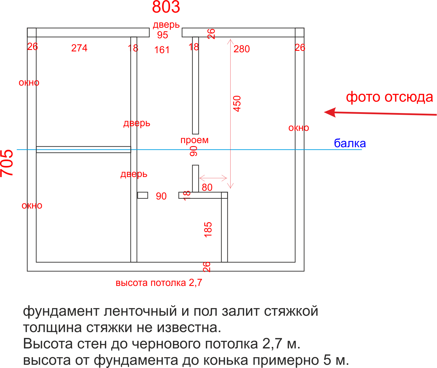 Не известно, что с фундаментом и полом. Известно, что фундамент ленточный, скорее всего в сечении 30*50. Весь пол залит стяжкой. качество стяжки не известно.