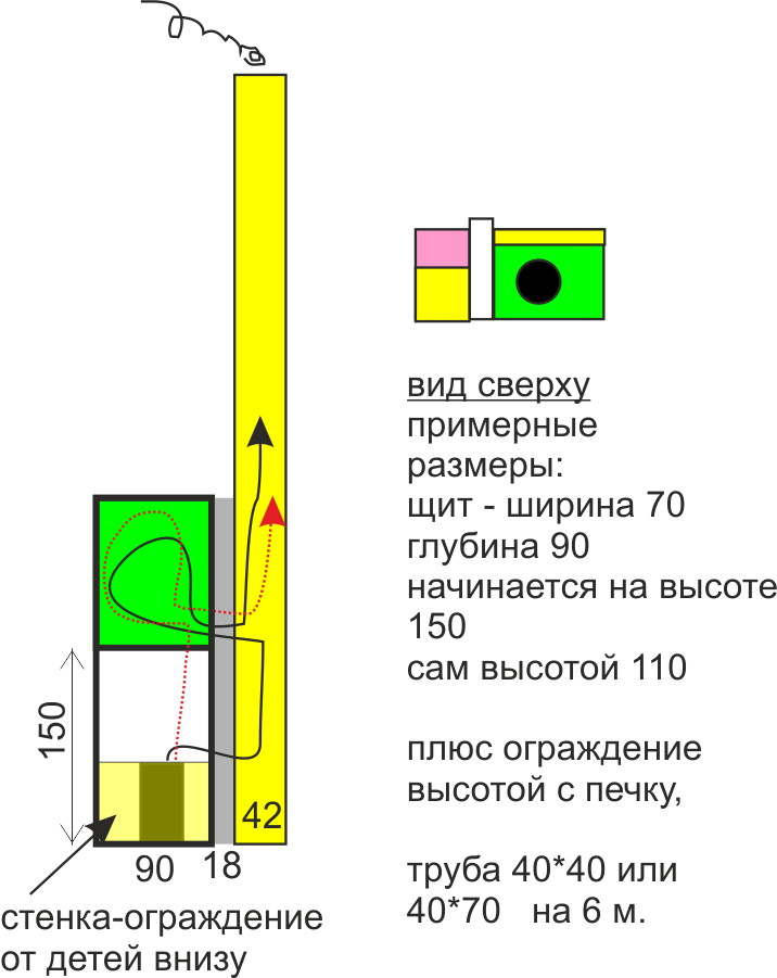 Труба может тоже быть как часть щитка, если сделать ее пошире (розовым показана на плане).