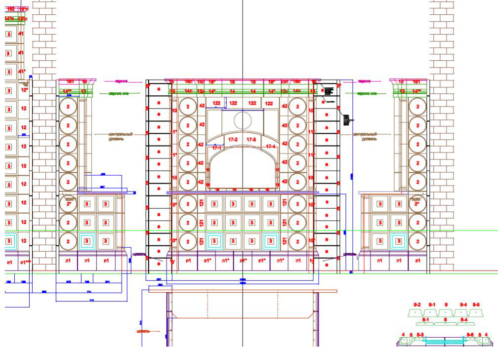 К комплекту изразцов были приложены монтажные чертежи с расположением изразцов на проекте. В соответствием с чертежами были промаркированы и сами изразцы, что существенно облегчило их монтаж.