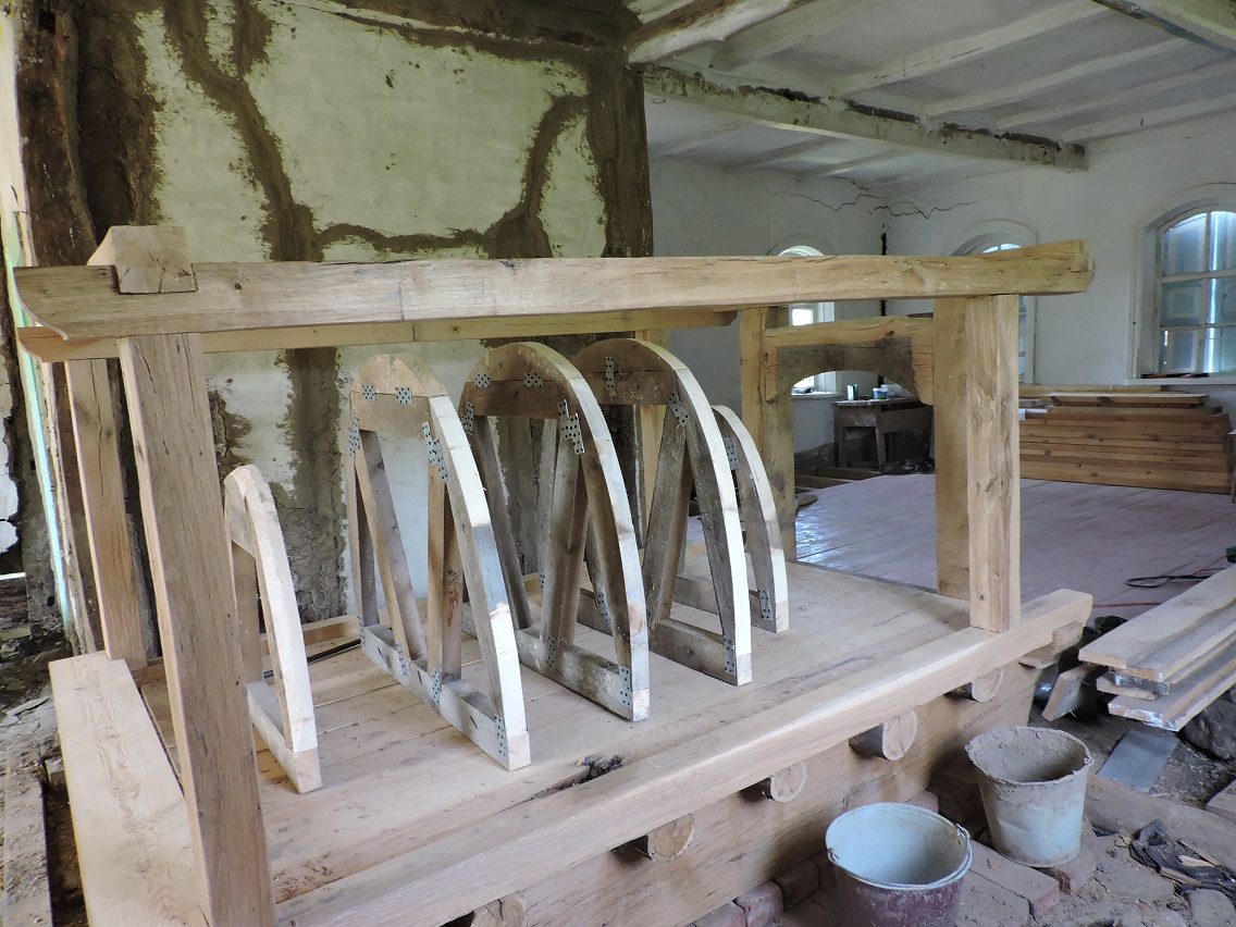 На этом фото деревянное дубовое опечье, выполненное без единого гвоздя. Так же видны деревянные кружала внутренней опалубки