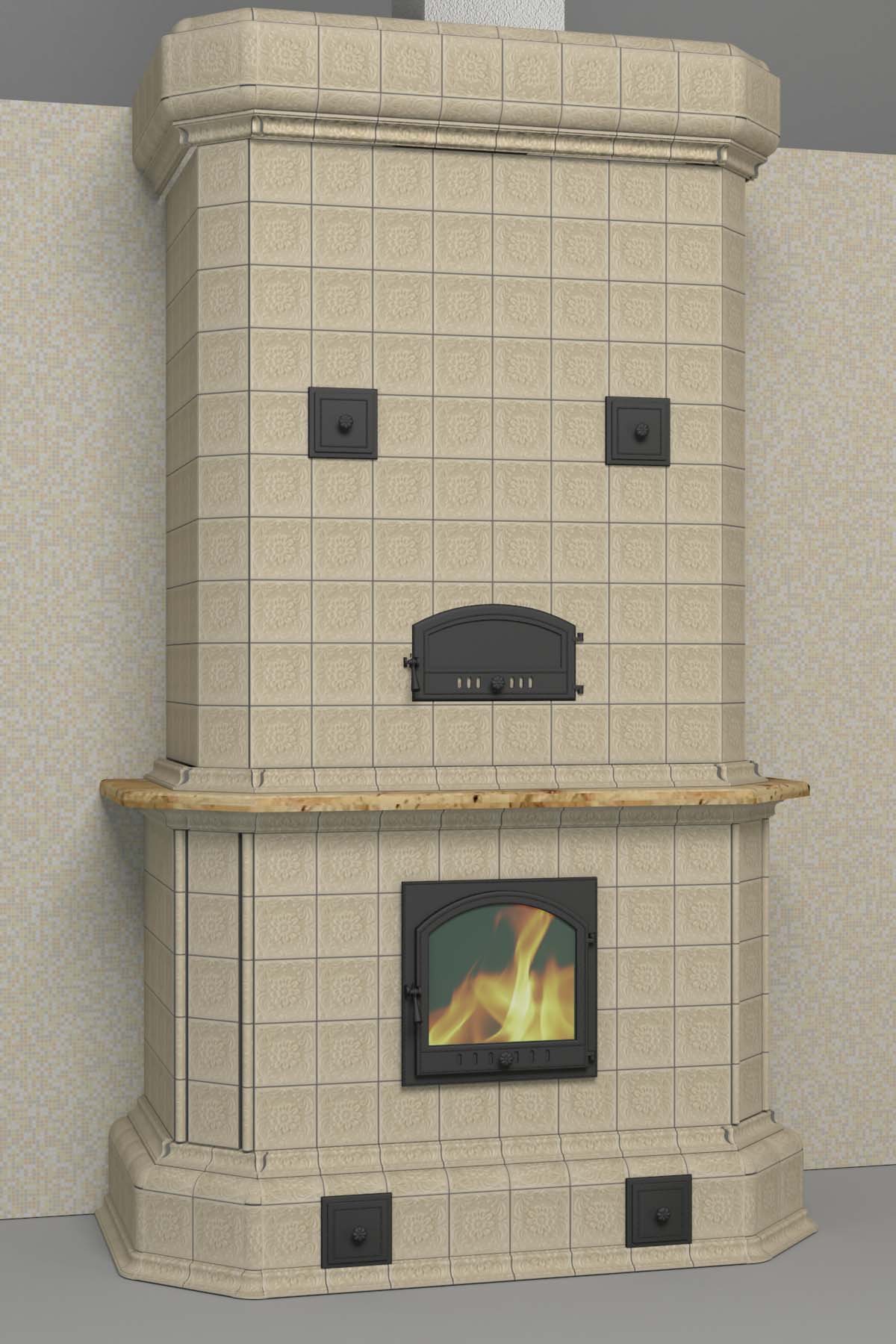 Сначала мы нарисовали данные печи в ЗД максе с использованием моделей изразцов, которые сами же и отмоделили. Получилось вот это.