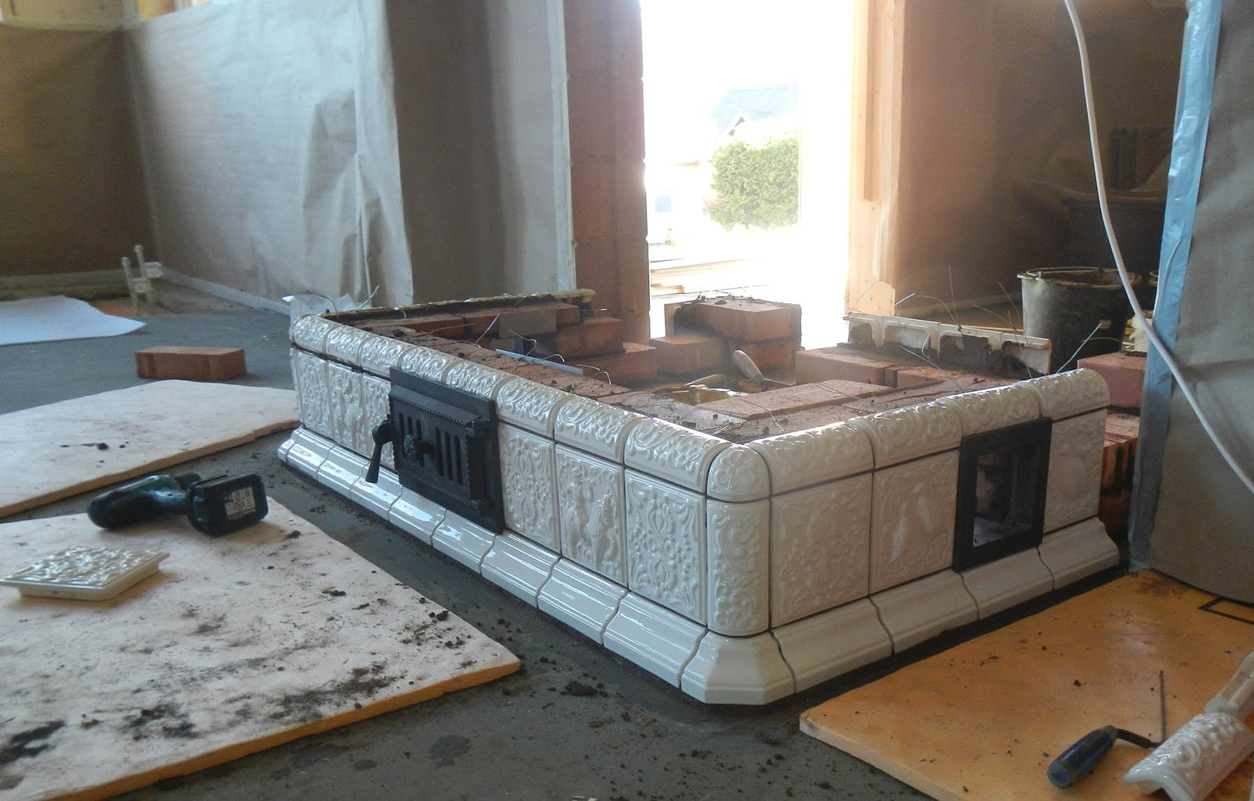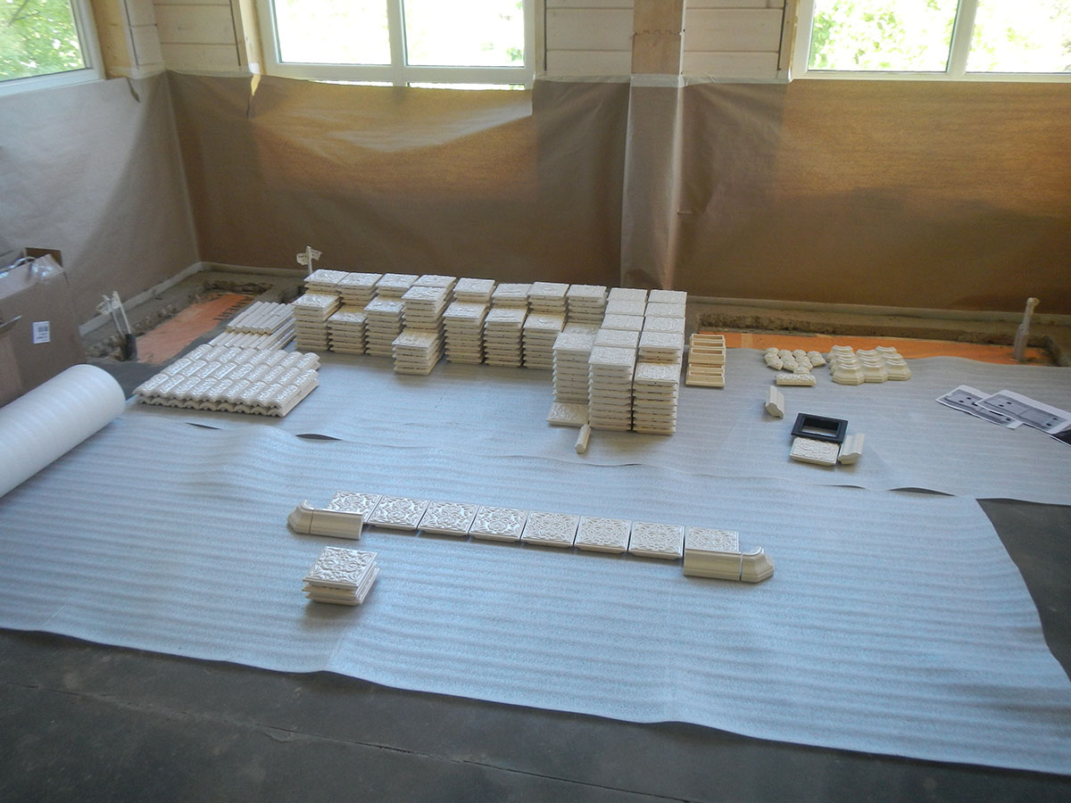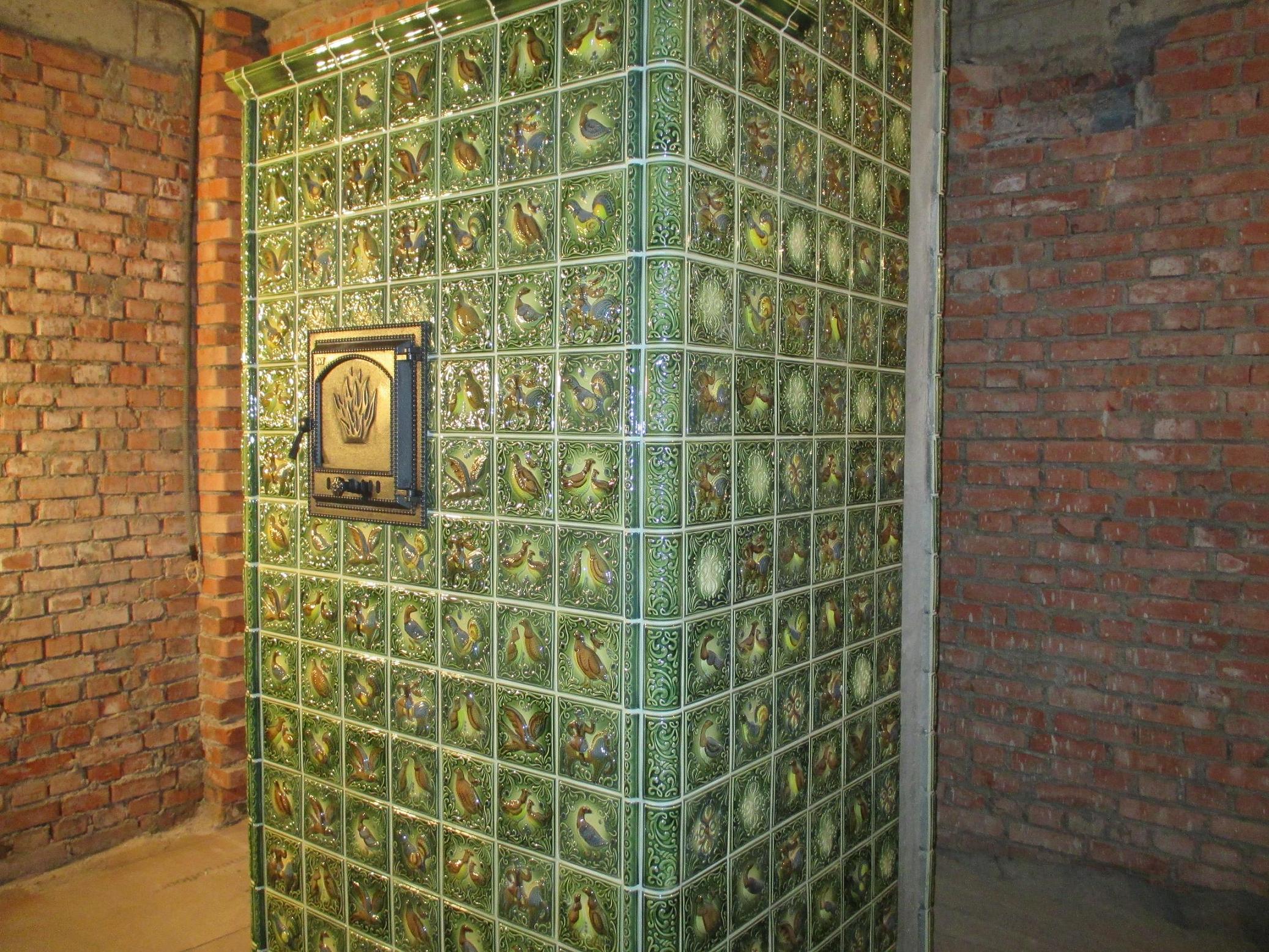 Строительство печей проходило параллельно с монтажем изразцов, без применения термоклея.