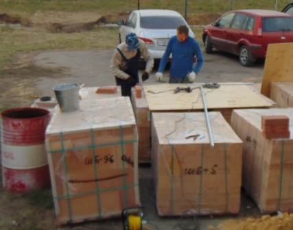 Кладка и заготовка деталей на полевом производственном участке продолжается.