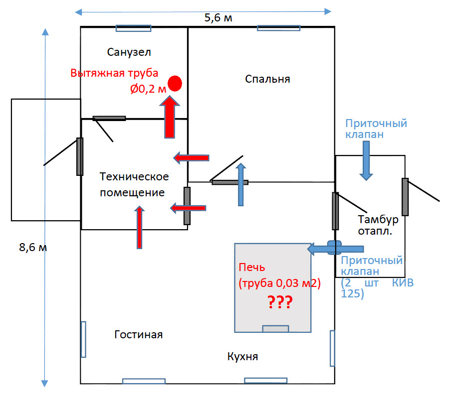 Возник вопрос по проектированию вентиляции в доме с печным отоплением (плюс электрическое).