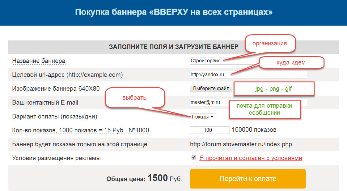 И, я так и не понял, куда надо зайти, что бы оформить и оплатить рекламный банер, статью и т.д.. Если не сложно, укажите еще раз (возможно я не заметил) где на сайте место для оформления рекламы. Спасибо.