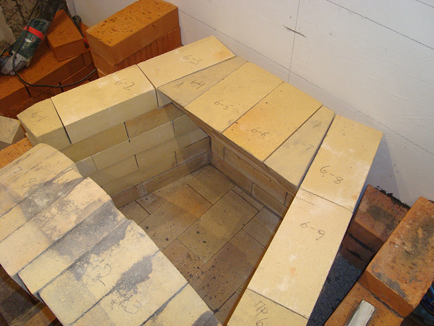 Кто-то очаги "кладёт"... Мы же, как положено сначала "складываем". Кирпичики насухо подобраны, подрезаны... 3-4 ряда пронумерованы