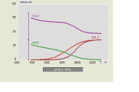 Условия для реакции и количество исходных компонентов были взяты произвольно. Однако, это не помешало увидеть термодинамическую обоснованность протекания реакции углерода и паров воды в заданных температурных диапазонах.