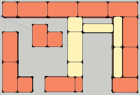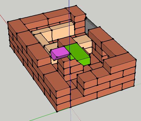 3. А вообще, т.к. вы только начинаете пользоваться программой , то работайте в группах, а не в компонентах(у вас все равно компонентов околов 40 штук, можно было бы обойтись всего 2-мя, красным и шамотным кирпичом, ну и фурнитурой еще) При этом пользуйтесь инструментами "Переместить/копировать" и "Масштабирование".