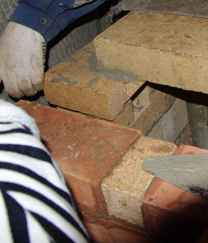 Голубые кирпичи не понравились... Не все, но те которые углом выпилены и вставлены в заднюю стенку - первыми. Не надо сухой шов перекрывать голубым кирпичем, а под плитой должна быть щель для прогрева варочного настила.