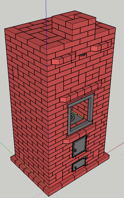 ПС. Не знаю, как в Скечтупе делать разрезы с заливкой. Кирпичи выглядят, как пустые коробочки. Не подскажет ли кто, как их закрашивать? (Пока что работаю в SketchUp-8)