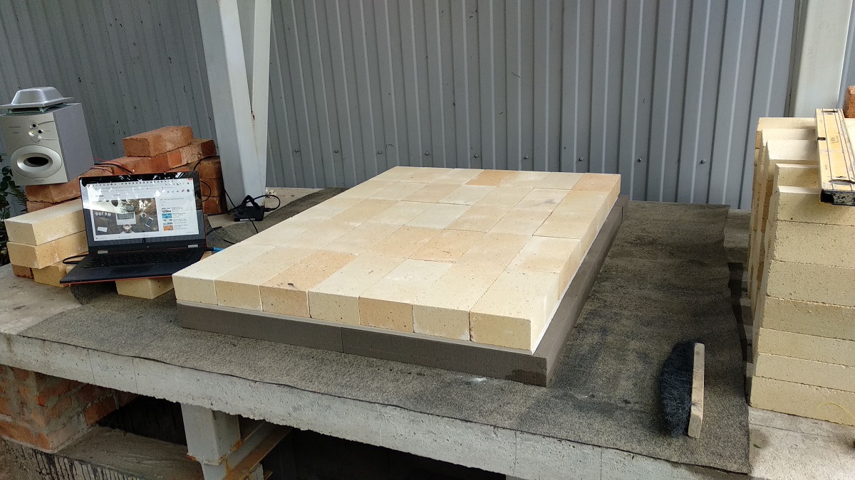 в итоге сделал рубероид - пеностекло - керамогранит. подскажите шамот пода на сухую укладывать или мертель с жидким стеклом? знакомый печник посоветовал только постель прикреплять, ложками и тычками между собой не скреплять. подскажите пожалуйста как лучше.