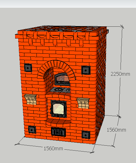 | (Картинка из Интернета) Такая печь эффективнее будет как отопительная. Дверку стоит поменьше поставить. |