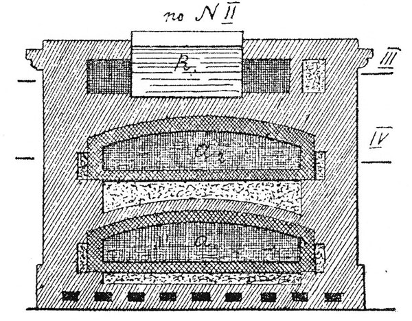 2) Поды, своды и бока выложены английским огнеупорным кирпичем для придания большей теплоёмкости.