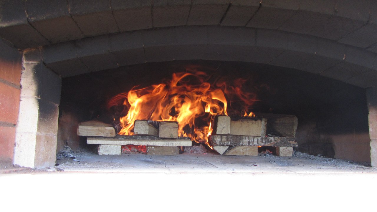 Сложенные дрова вдвигаются кочергой в самый конец печи и огонь разводится, сначала, в верхнем ярусе.