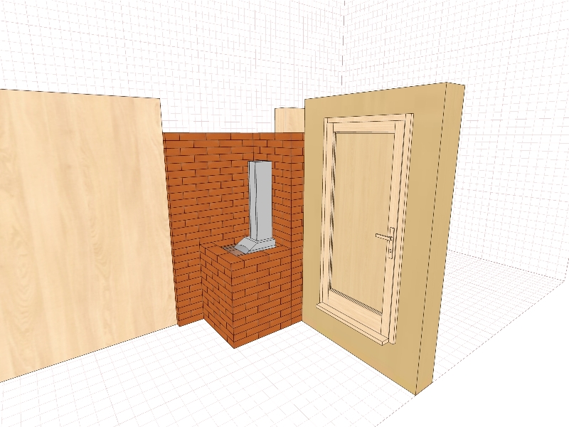 По задней стенке, под дверкой каменки, ряды без перевязки . В этот проём и монтирую . Ну а "Тунгуска" не маленькая, как никак на 24 кубика модель.