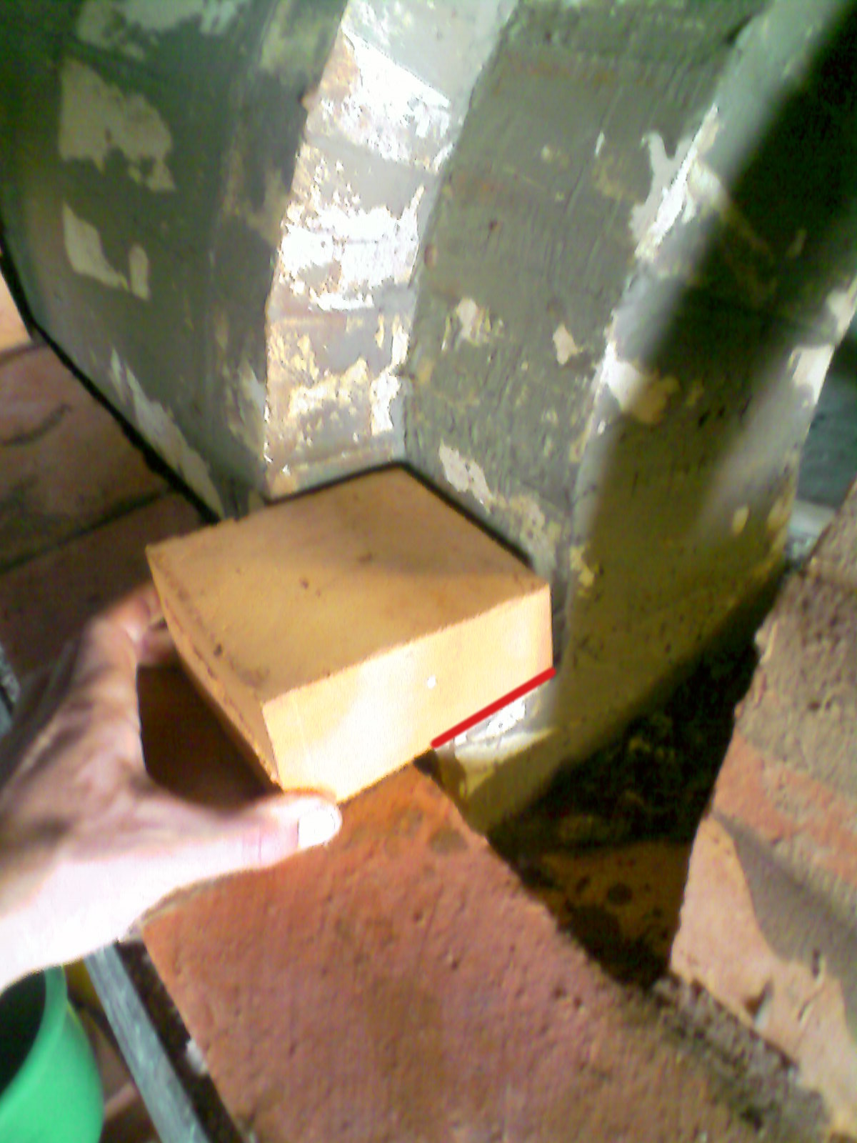 Доброго времени суток, Кладу маленькую русскую печь. Прошу подсказать можно ли на выделенном красной линией месте опирать арку на шамотный кирпич? Будет ли движение при нагреве? Если нет, то выдержит ли арка опираясь только на "пятку"?
