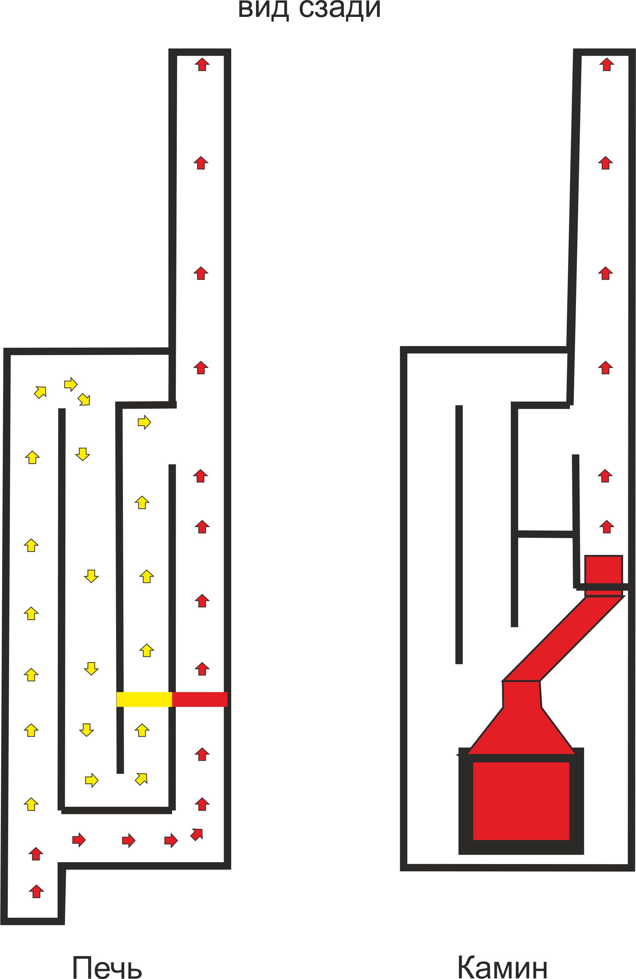 печник, с которым я обсуждаю проект, утверждает, что теплоемкость варианта с топкой недостижима при использовании кирпича. Как ваше мнение будет ли работать дымоход (оба канала) если изготовить топку из кирпича. На схеме это вариант справа.