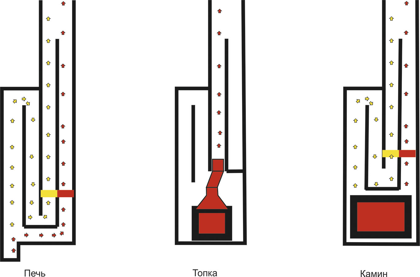 будет ли работать дымоход (оба канала) если изготовить топку из кирпича. На схеме это вариант справа.