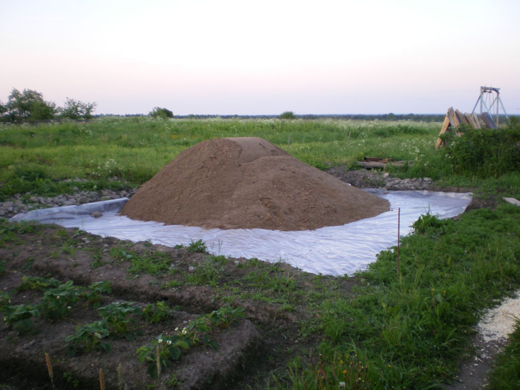 | Асбоцементный лист, выровненый по высоте. Дальше 2 листа рубероида и вперед... |