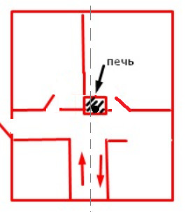 а на мой наоборот малая. Но подойдет если будет с перегородками как у вас планируется на рисунке. На фотке печь 5/3,5 кирпича-где то на 60 квадратов.