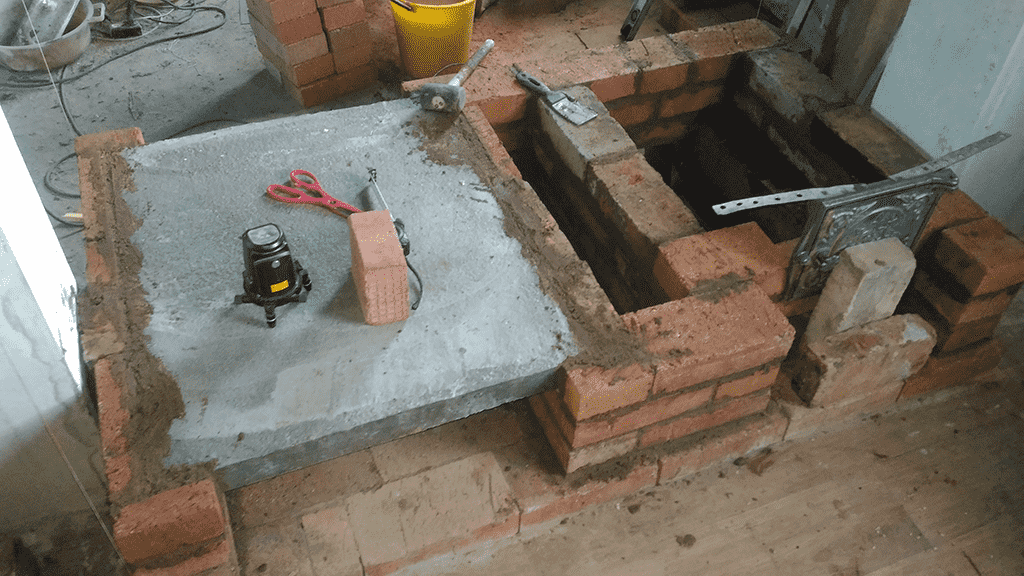 Первую декоративную арку решено было заменить монолитной плитой из обыкновенного армированного бетона так как в противном случае под очага камина получался выше чем мне хотелось бы.
