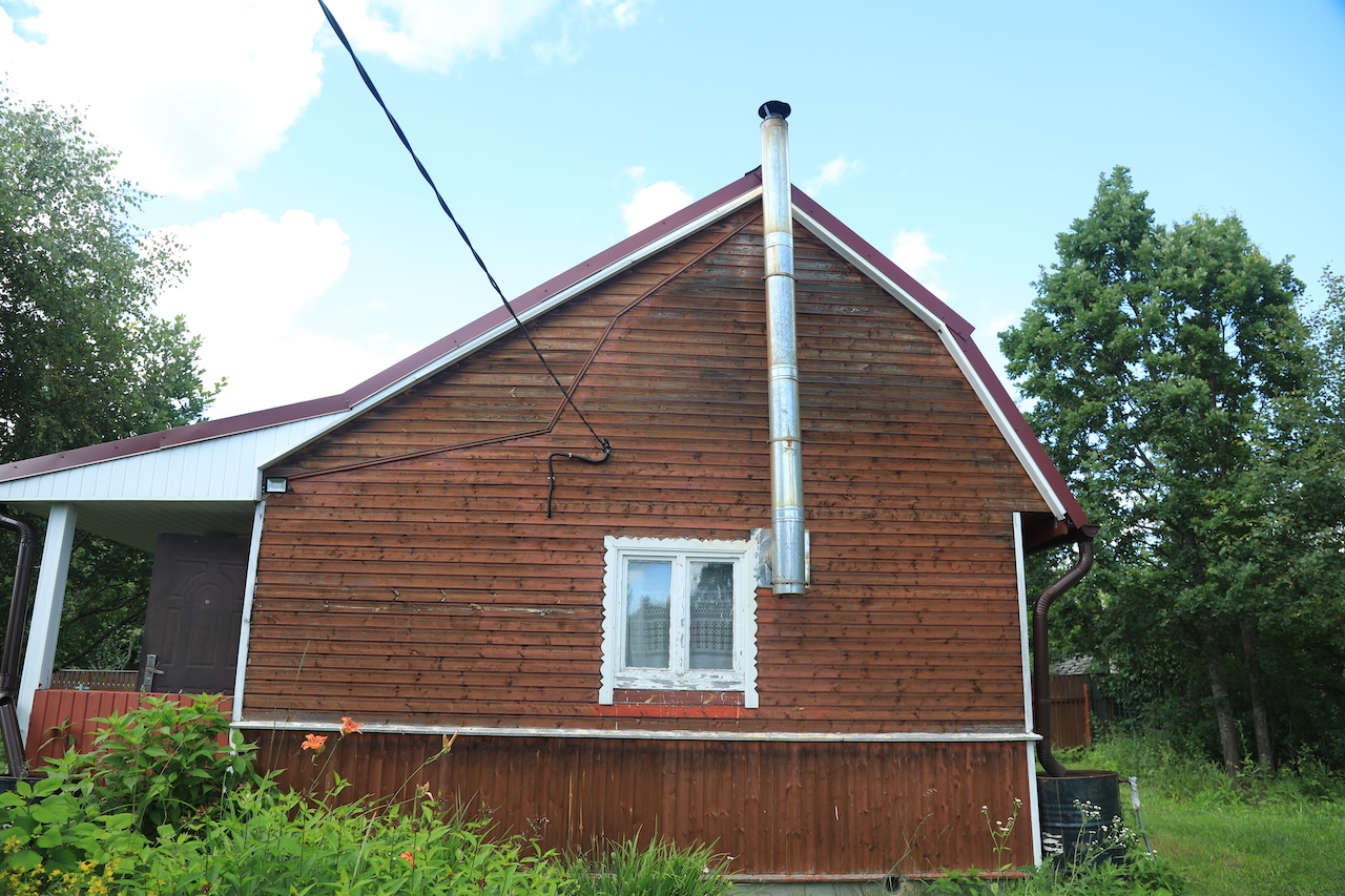 Прошу вас взглянуть. Печи и трубе-сэндвичу снаружи - лет пятнадцать уже. Года четыре назад приезжал печник, мы с ним прочистили трубу, проверили состояние сэндвича в части, которая проходит через стену (всё в норме). Он снимал стакан, который внутри, на комнатной части (труба из нержавейки, всё по инструкции), смотрел защитные экраны и т.д.