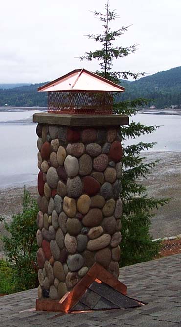 Кровля сгораемая, стоит скорее всего открытый камин (на USA похоже по ландшафту) Следовательно-искрогаситель.