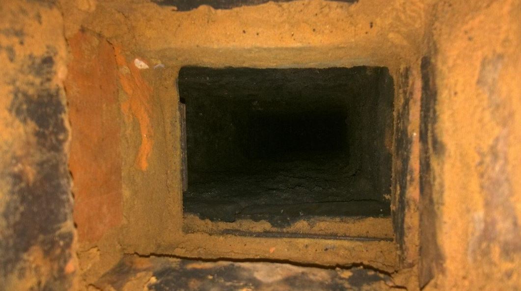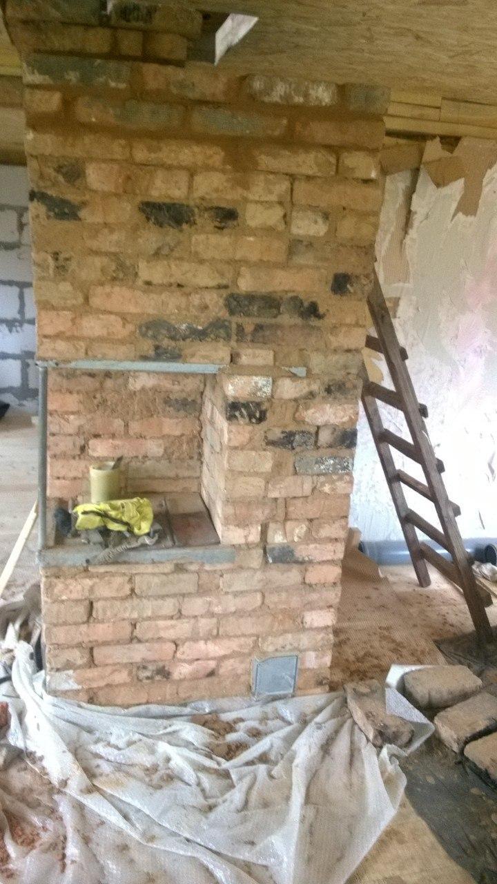 Слева место где перекрыл кирпичом, после этого дымоход пошёл в четверик
