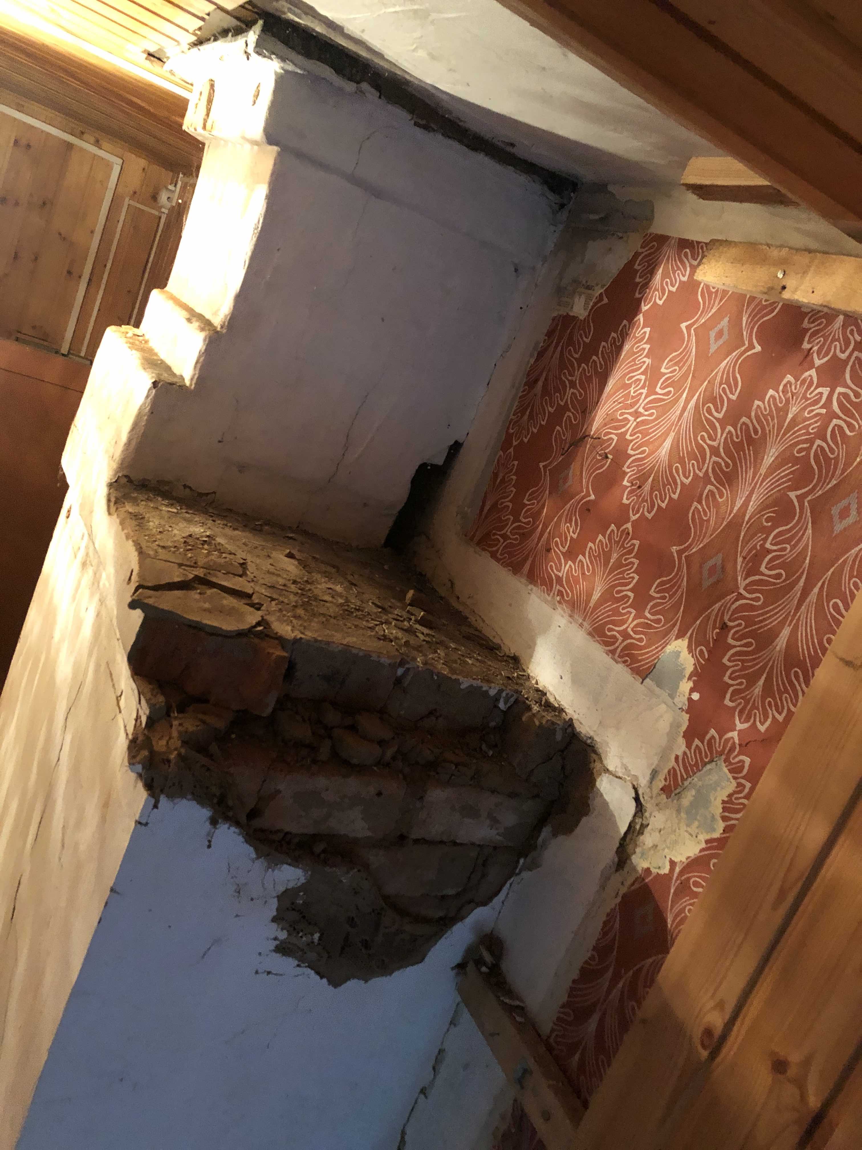 Судя по верхней фото,печь не развалилась ещё, из-за штукатурки,она как корсет ее держит.