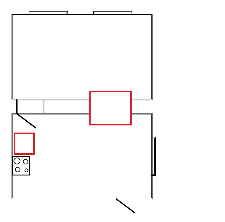 Выяснили точное расположение простенка между комнатами...