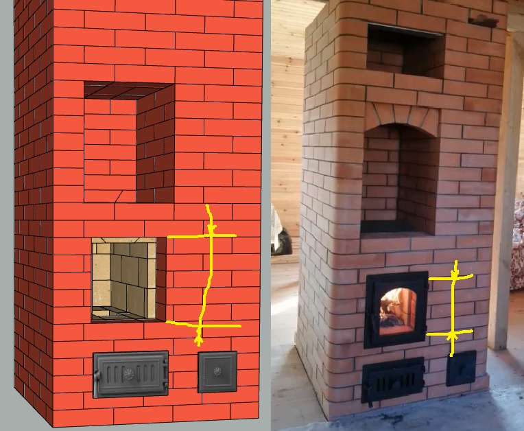 1. Проем топочной дверцы: на фото проем 4 ряда, в проекте 5 рядов. На сколько это важно?