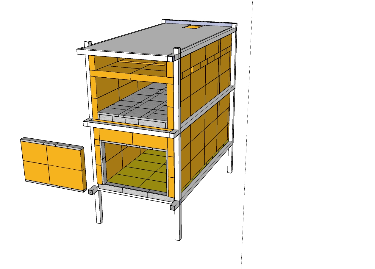 1. По габаритам топливника получается, что до топки полного цикла она недотягивает. Процесс в активной фазе видимо полезет за хайло... а там холодный шамот и колпак. Самотяга секции над хайлом будет задавлена нижним выходом ДГ из этого колпака. Я бы этот колпак переделал в первый жаровой подъемный.