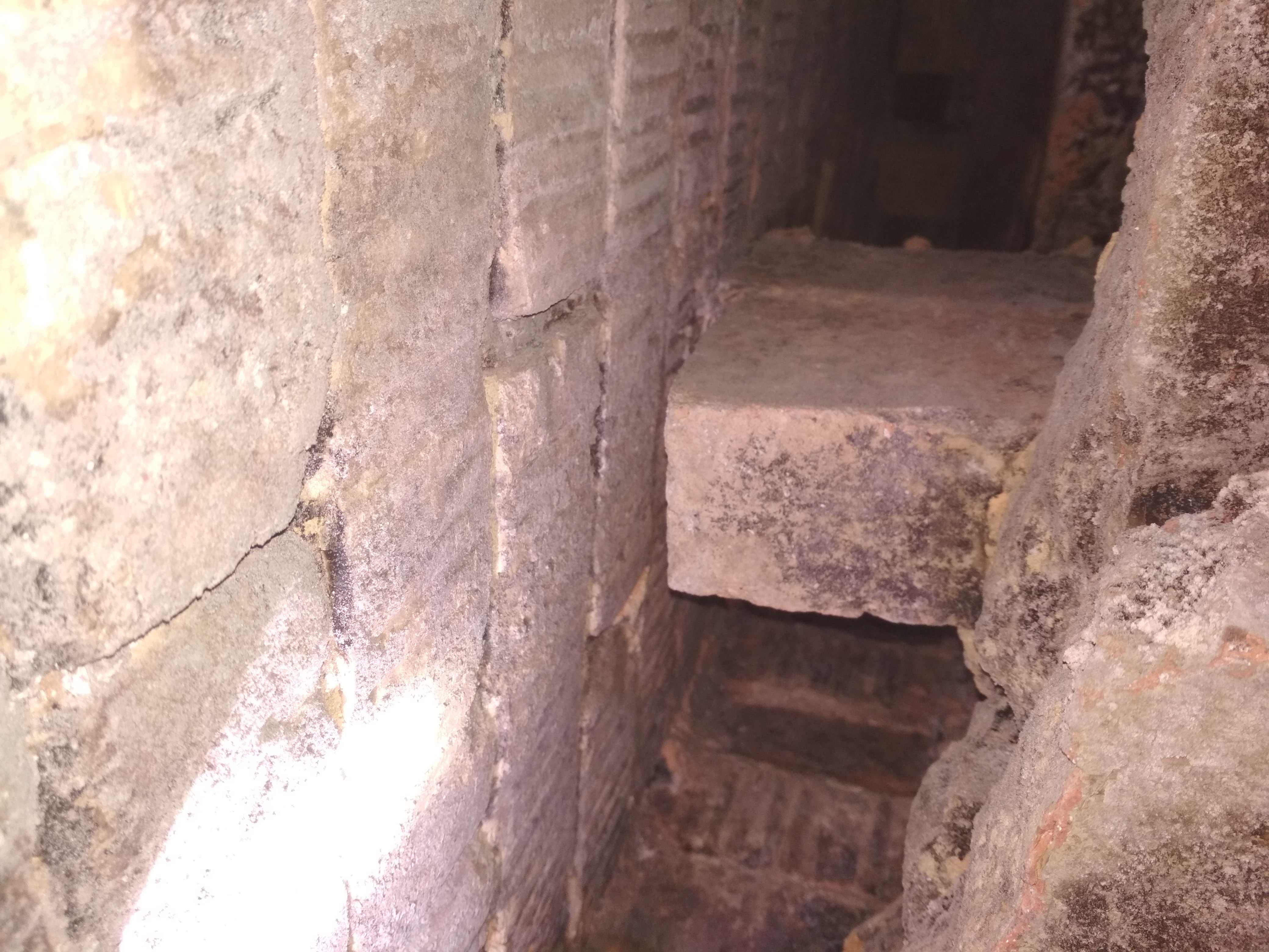 3. а вот подпереть его вертикальным кирпичем стоит. Сначал кусок внизу а потом отмерять от целого и вклинить(там всего около 30см) но без фанатизма бо кладка выше уже потрескалась.