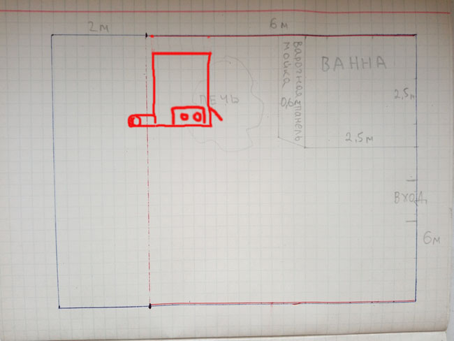 Если что- то готовить, и дом отапливать - то вот вариант Русской Теплушки (извиняюсь за каракули)...здесь, кроме горнила, ещё плита и лежанка. Трубу легче вывести сразу наружу, и по фронтону вверх. Размеры печи 120 на 164 см.