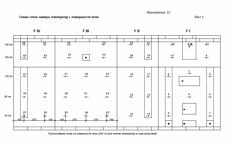 Разметка точек снятия температур с поверхности печи