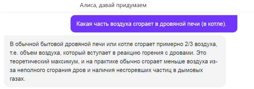 - Какая часть воздуха сгорает в дровяной печи (в котле)?
