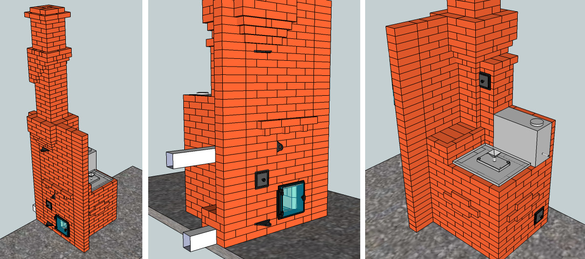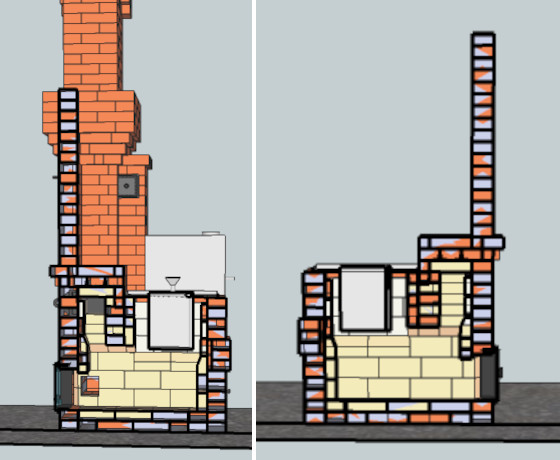 Печь подовая. Приход воздуха в топку - снаружи. Входной поток регулируется заслонкой слева от топочой дверки. Выше и левее дверки расположена вертикально заслонка для регулирования короткого хода.