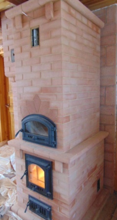 Представляю для обсуждения реализованный проект печи с жаровыми каналами для дачи с временным пребыванием людей -выходние дни.Печь отапливает две комнаты. Одна комната(спальня) -в которой находится печь -площадь комнаты 16м2 Вторая комната такой же площади выше этажом -отапливается горячим воздухом от жаровых каналов. Преимущество данной конструкции печи -горячий воздух быстро создаёт комфортную температуру в промороженной за неделю комнате. После протопки -греет комнату сакумулированным массивом печи теплом. Печь с двумя протопками в сутки.Время первой протопки от степени выстуживания помещения- 2-5 часов. Перетопы не случаются -так как идёт постоянный съём тепла с внутренних поверхностей. Печь построена из кирпича пр-ва "Кемма"-лицевая часть.Внутри шамотный сердечник и жаровые каналы из стали AISI310S.Стенки печи с шамотным сердечником переменной толщины. Нижняя часть -90мм шамот и 120 мм полнотелый кирпич. Выше полки- 65мм шамот и 65мм полнотелый кирпич. Решён вопрос не контакта дымовых газов непосредственно на полнотелый кирпич. И распределение теплоёмкости по мере остывания дымовых газов.