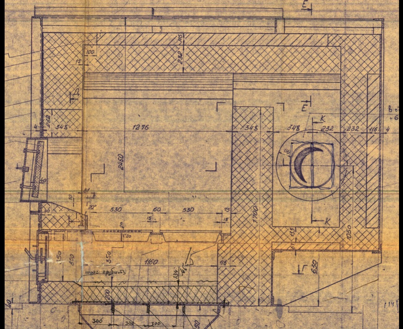 Спасибо, что отозвались. Она работала с 1980-2010 гг. В 2011 году её переложили. (в связи с чем переложили - установить невозможно).Перекрытие сделали на уголках (!!) в два ряда (похоже работал каменщик)...конечно всё вывернуло, кирпичи перекрытия расшатались. К сожалению, невозможно также установить была ли арка изначально(с 1980 г).