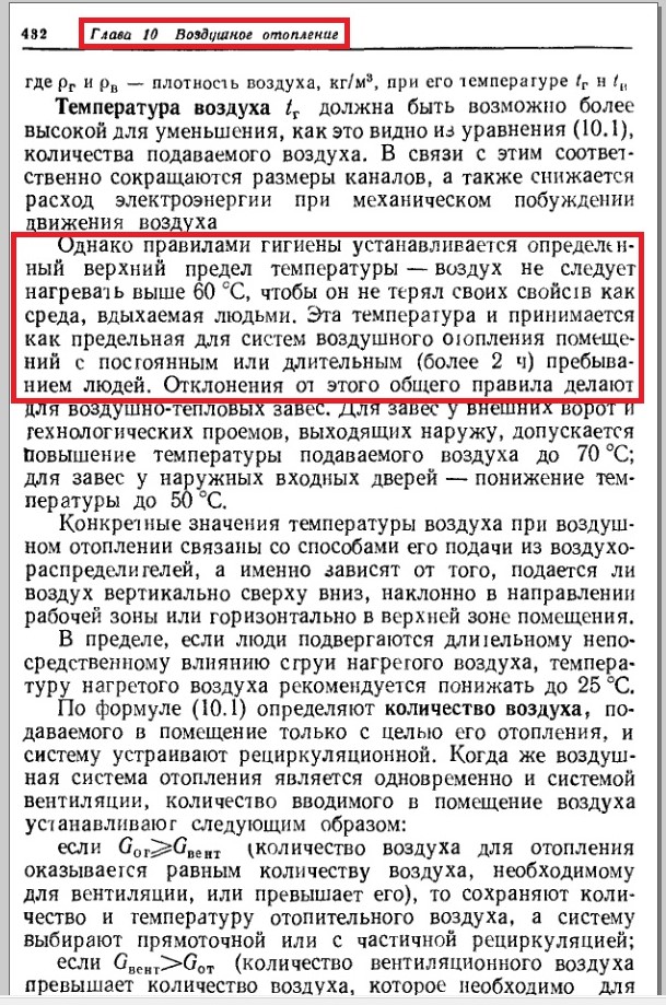 И хорошие русские дореволюционные печники тоже знали примерно эти же цифры: желательная максимальная температура теплоотдающей стенки печи (из любого материала) принималась примерно в 65 град. Ц.