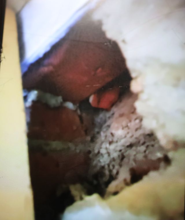 вскрыл средний канал , оказалось дымоходы соединились через кусок асбестовой трубы под углом 45 градусов . попутно найдено гнездо и остатки птички средних размеров . продолжаем разгадывать ребусы