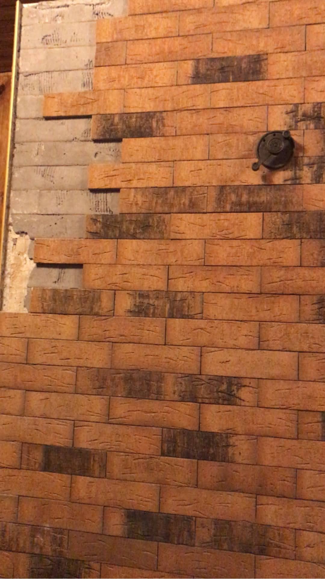 Мастер согласился переделать, результат ужасающий, кладка кривая/ косая, ну ладно это дальняя стена, но самое главное что после пяти топок плитка опять отходит.