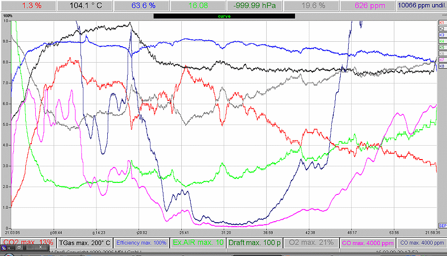 Температуры я уже приводил в одном из сообщений и что так же косвенно может свидетельствовать о режиме и чистоте горения.